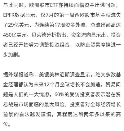 对于新兴市场资金二季度遭遇的大规模资金外流,分析师表示,资金外流最合理的解释为,中美贸易紧张局势升温,使市场担忧此风波透过制造供应链,对其他新兴市场国家产生连锁反应。